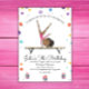 This gymnastics birthday party invitation is part of a matching set of birthday party accessories. Your little girl is going to enjoy every magical moment of her special day. This design features the colours of the rainbow with special emphasis on pink and purple. You will find a lovely gymnasts, balls and balloons, along with easy-to-read fonts, and plenty of space to add all of your unique information. For any special design needs, feel free to contact the designer, by sending an email to choosehappystudio@yahoo.com