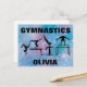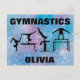 Gymnastics Postcard - Has a beautiful colourful background and 4 female gymnast silhouettes doing a variety of gymnastics skills and events! Can be personalised with the name of your gymnast or your gymnastics club name!