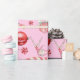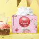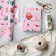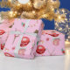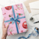 You can add your name to this Christmas wrapping paper, that features a lovely watercolor illustration of a couple of gymnasts in Santa hats, as well as candy canes pine cones and lots of other Christmas decorations. It creates a one of a kind pattern in a light pink background.