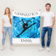 Blue gymnastics fleece blanket with gymnast and personalised name.
