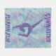 "'GYMNASTICS" FLEECE BLANKET WITH GYMNAST "FLIPPIN FUN" LOGO IN PURPLE & BLUE.