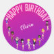 Gymnastics Friends "Happy Birthday" Pink Purple Classic Round Sticker