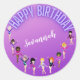 Gymnastics Friends "Happy Birthday" Purple Ombre Classic Round Sticker