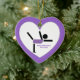Gymnastics gifts, gymnastics performer ceramic ornament in heart shape featuring a minimalist black icon of a gymnast wearing a purple leotard with a purple border around. The perfect gift ideas for the gymnastics athlete, lover or those who do it as a hobby. See lots of designs at our Sports Gifts store.