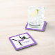 Gymnastics gifts, gymnastics performer beverage coaster that showcases a minimalist black icon of a gymnast wearing a purple leotard with a purple border around.