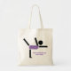 Gymnastics gifts, gymnastics performer tote bag that displays a minimalist black icon of a gymnastics performer wearing a purple leotard and a purple border around.