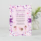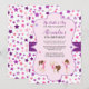 Tumble on over and celebrate your little girls birthday with this cute invitation featuring girl gymnasts playing on a purple frame with pink and purple stars background. Fun typography in black and purple for your party details. Easy to personalise with custom options.