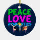 Cute Peace Love Gymnastics gift for a little girl gymnast who loves to tumble! 3 different kids doing different gymnastics tricks below the words in pretty neon pink, green, and blue.