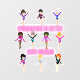 Gymnastics Is Better With Friends in neon pink font, features 10 adorable gymnast all with a variety of hair, eye, skin and leotard colours.