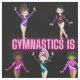 Gymnastics Is Better With Friends Pink Font design loaded with gymnast that show off their individual look and style with different hair, eye, skin and gymnastics leotard colour combinations!