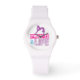 Colourful gymnastics watch with the text, "Gymnastics is my Life". It has a gymnast silhouette that appears to use the word "Gymnastics" as a beam. You can change the background colour by using the "customise it" button. (LIGHT COLORS work best)