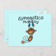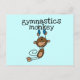 A cute brown stick figure monkey swings from the rings and text reads "gymnastics monkey" on monkey gymnast T-shirts, mugs, hoodies, cards, stickers, and other gymnastics apparel and gifts.