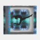 "'GYMNASTICS MOM" FLEECE BLANKET IN SHADES OF BLUE,GRAY & TURQUOISE.