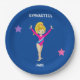 GYMNASTICS PARTY PAPER PLATES WITH PERSONALIZED NAME FOR GIRLS.
