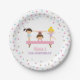 Flip, Tumble, Jump and Play! Gymnastics birthday party plates in pink, purple and blue pastel colours.