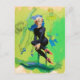 Classic PinUp card showing a cute girl in a black gym dress, painted by Al Buell (1910-1996)