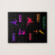 Gymnastics Puzzle - Vault, Bars, Beam, Floor - Multicolored design with gymnast silhouettes all over, plus you can personalise this gymnastics puzzle with the name of your gymnast!
