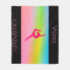 Gymnastics fleece blanket with rainbow colours and personalised name.