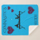 Gymnastics blue Sherpa blanket with gymnast & purple hearts. Personalised name.