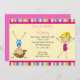 Tumble and Flip all day! Start your celebration off right with this adorable party invitation. It has a border with multi coloured stripes around the top and the bottom. . The centre is a light yellow solid rectangle where you add your party information to personalise. There's a cute brown haired girl standing on her head and a blonde stick figured girl on the right side with both her arms up. Check out our other products, colours and designs in this line. © babystar