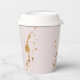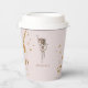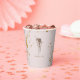 Young girl's Gymnastics or dance birthday party paper cups. Pink and gold. Tumble & twirl. Glam. Brown Hair.