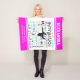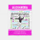 Gymnastics typography fleece blanket. Lots of gymnastics words surround this adorable gymnast. It has decorative stars and 2 custom text fields for you to add your name and gym. The colours are bright in pink, blue, and green to accent the black. Be sure to pick the right size for you!