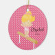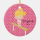 Personalise Dated Cute little blonde gymnist Girl Christmas Ornament set on a pink Polka dots background with a balance beam. A Wonder Christmas gift sure to be treasured for many years to come.
