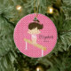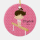Personalise Dated Cute little brunette gymnist Girl Christmas Ornament set on a pink Polka dots background with a balance beam. A Wonder Christmas gift sure to be treasured for many years to come.