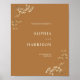 Wedding welcome with baby's breath gypsophila botanical designs at corners with goldenrod color background and off white text.