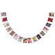 This artsy bunting flag, features 16 different patterns and collages, in various colours and styles. Floral patterns, stripes, leopard print, geometric designs all work together to create a gypsy, bohemian style flag. Colours used, but not limited to, red, pink, black, white, navy, green, salmon, coral, peach, gold, and many others. Perfect to hang inside or out, for everyday use. Great for dorms, patios, or caravans.
