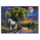 Gypsy Vanner Horse and Willow tree under a Full Moon and a colourful Starry sky