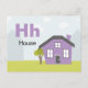 Letter H is for House in our Alphabet Flash Card set. Get all 26 letters of the alphabet! A double-sided postcard that is great for memory games and teaching, geared for education, schools, teachers and homeschool for kindergarten and babies. All text is editable if you need to customise.