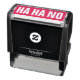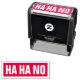 Self-inking stamp with the text "Ha ha no".