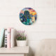 Wall Clock, 25.4 cm Round Black Wooden Frame