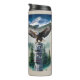 About "Haida Pride" - A powerful scene featuring a proud Bald Eagle, a sacred animal in First Nations culture, alighting upon a stylised Haida totem pole with a magnificent mountain rising behind.