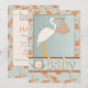 Asian inspired dill floral and dot print with stork carrying a baby bundle.