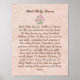 This christian poster has elegant pink roses and the catholic prayer Hail Holy Queen (the English translation of the Latin Salve Regina): Hail, Holy Queen, Mother of Mercy, our life, our sweetness and our hope. To thee do we cry, poor banished children of Eve. To thee do we send up our sighs, mourning and weeping in this valley of tears. Turn then, most gracious advocate, thine eyes of mercy towards us, and after this our exile, show unto us the blessed fruit of thy womb, Jesus. O clement, O loving, O sweet Virgin Mary. Pray for us, O Holy Mother of God, that we may be made worthy of the promises of Christ. Amen