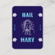 This elegant two-sided prayer card features the beloved Hail Mary in modern, easy-to-read language on one side and a serene “Ave Maria” design on the other. The front showcases a peaceful illustration of Mary in prayer with floral accents on a deep blue background.