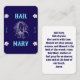 This classic two-sided prayer card features the traditional version of the Hail Mary with timeless language on one side and a beautifully designed “Ave Maria” front on the other. The illustration of the Virgin Mary in prayer is surrounded by elegant floral accents against a rich blue background.