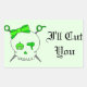 Whether you cut hair or just love to style your own, this "I'll Cut You" hair accessory skull design is for you! Check out my store for more versions of this skull! Customise this product by changing or removing the text! © 2012 Jessica McConnell all rights reserved