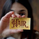 Hair by Typography Business Card. Burgundy on a faus Golden background makeing it elegant and stylish.