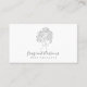 A simple, modern, pretty hair care products maker business card, featuring a pretty line drawing of a woman with blossoms for hair and a trendy modern script typography.