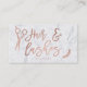 A modern, stylish hair and lashes artist business card with modern hand lettering style script cursive typography in faux rose gold foil on a trendy and elegant white marble background. If you need any customisation, don't hesitate in contacting me wih eyelashes and scissors.