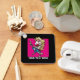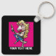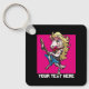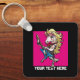 A keychain or key ring for those ready to rock! Featuring a fierce pouting unicorn in 80s hair metal gear. Accessorised beyond reason, with sparkling blue star guitar, zebra print leggings and big jewellery. If unicorns formed bands, it would have to be glam rock. Change the default text to your preferred message, and change the shocking pink background shape and background colour if desired. Heart tattoo reads 'horny'.