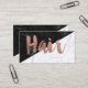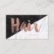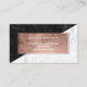 A modern, stylish hair stylist business card with modern hand lettering style brush typography in faux rose gold foil on a trendy and elegant black and white marble colour block background. If you need any customisation, don't hesitate in contacting me