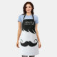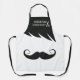 Fun and modern apron featuring black hair and an imperial moustache on a white background. The upper part is decorated with little white scissors and is customisable with the name of your shop in a white modern font. Makes the perfect apron for barbershop employees.