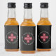 A cute and clever addition to your wedding hotel bags or hangover relief kits, these mini liquor bottle labels feature your initials and wedding date inscribed inside a red cross, with "hair of the dog, for temporary hangover relief" in white lettering.