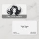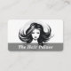 A black & white watercolor of a beautiful woman with stylised hair. This is a business card that can be used by hair stylists, colorists, beauty salons, boutiques, etc.