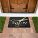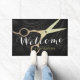 Hair Salon Hairstylist Black Gold Scissors Welcome Doormat