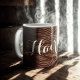 Hair Salon / Hairstylist/ Hairdresser / Beauty Salon Custom Mugs Templates - Modern Faux Gold Scissors on Elegant Black and White Hair Pattern Background.